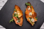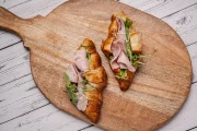 Mini Croissant Mix obsahuje tři různé druhy slaných croissantů po 4 kusech: šunkový (bylinkové máslo, šunka, rukola), lososový (bylinkové máslo, uzený losos, rukola) a sýrový (bylinkové máslo, ementál, hermelín). Všechny jsou čerstvě připravené a ideální na meetingy, snídaně či školení. Skvělá volba pro rychlé občerstvení s pestrou chutí.